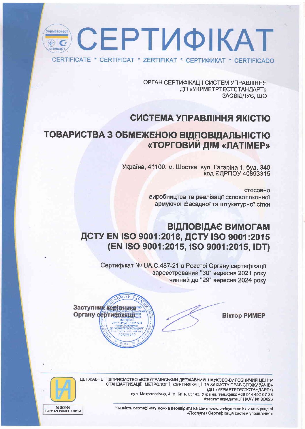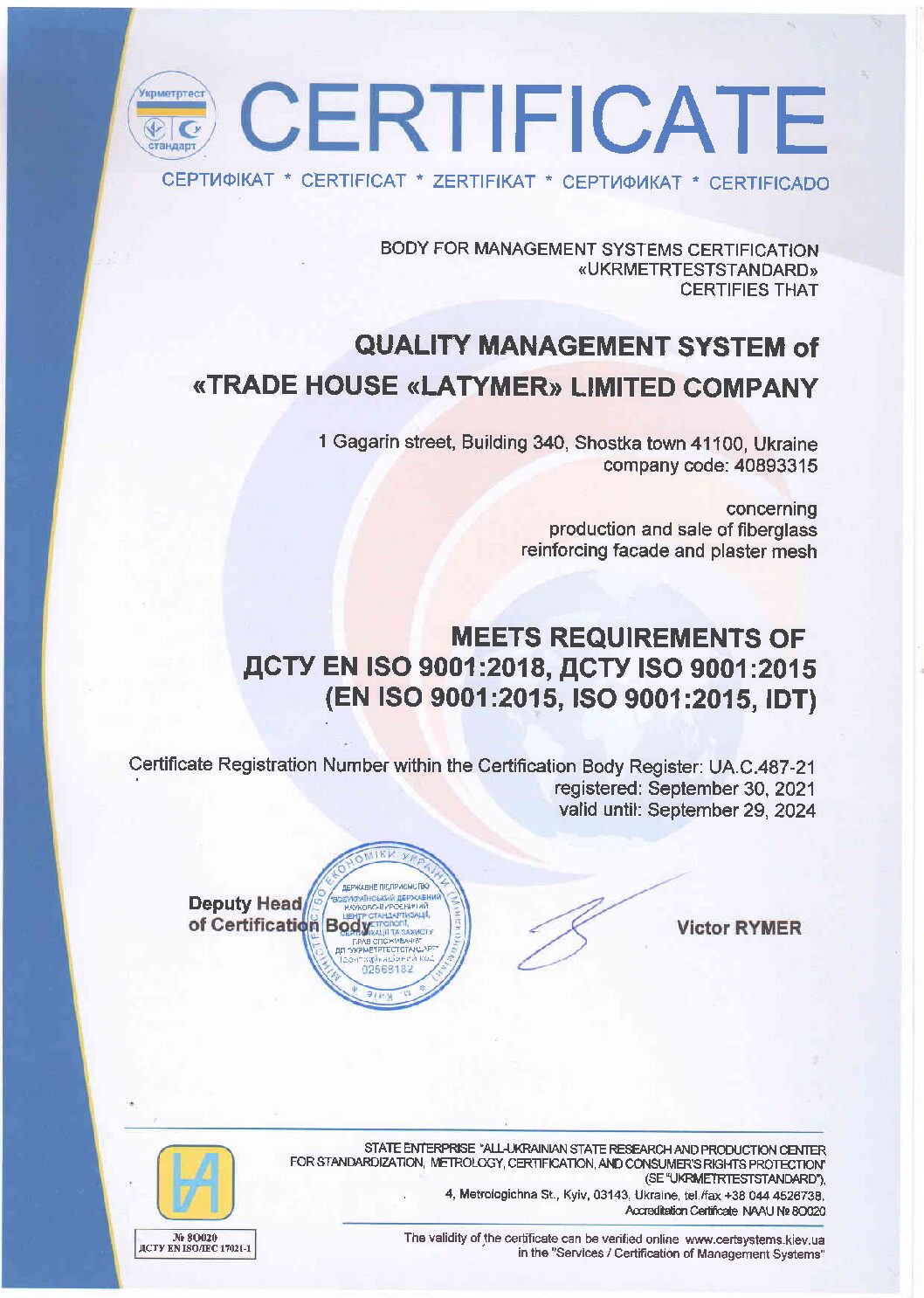 Управление качеством на производстве LATYMER сертифицировано Международной организацией по стандартизации (ISO 9001:2015).